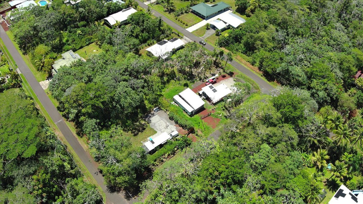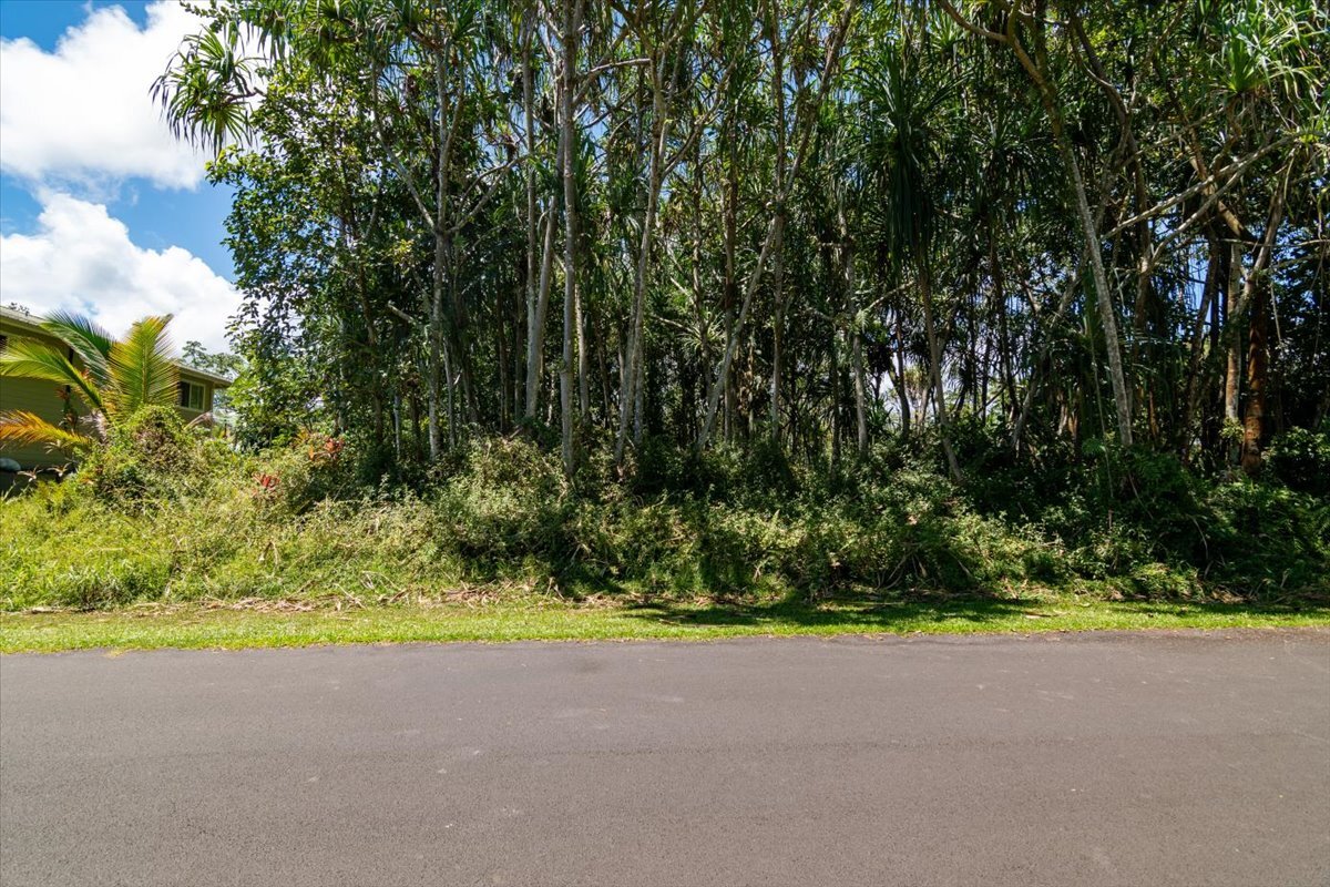 Highway 130 to Pahoa continue on the roundabout turn left onto Kahakai Blvd go down toward the ocean. Turn right onto S Opakapaka Street, it's the 10th lot on your right.