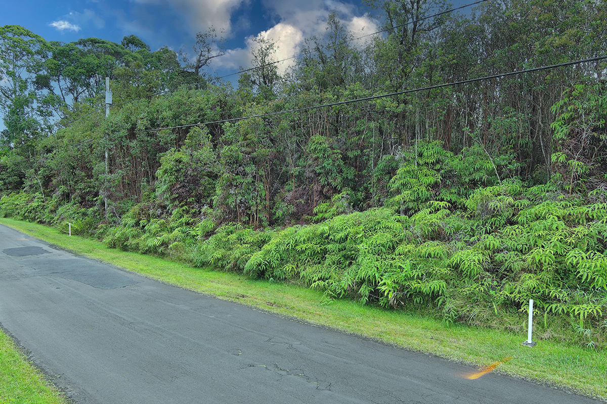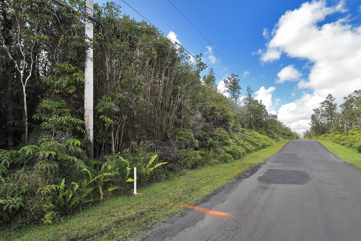 Highway 11 toward Mountain View. Turn left onto S Kulani Road go down to the stop sign and take the last left turn onto Pikake Street. Go down to Electric pole 59, subject lot is on your right, sign posted.