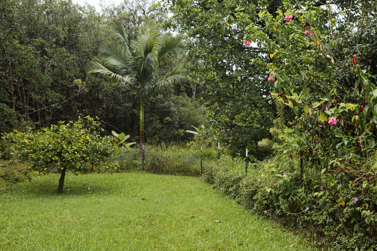 Enjoy beautiful tropical plantings-guava, lemon, mountain apple, puakinikini, hibiscus, ginger, anthurium, and a mango tree in the back. Approximately 1-acre has been cleared, providing a spacious, usable area for gardening, expansion, or outdoor living.