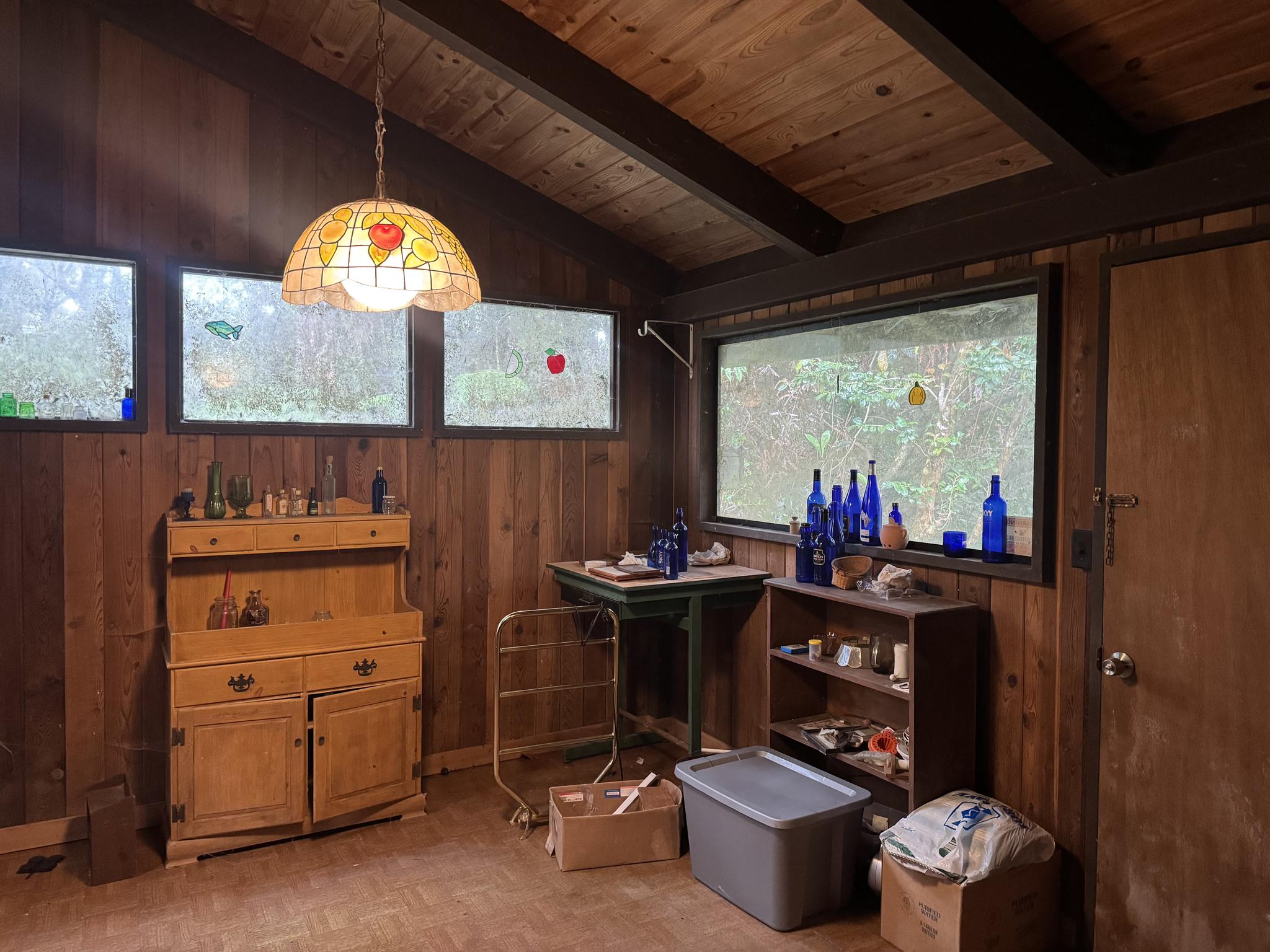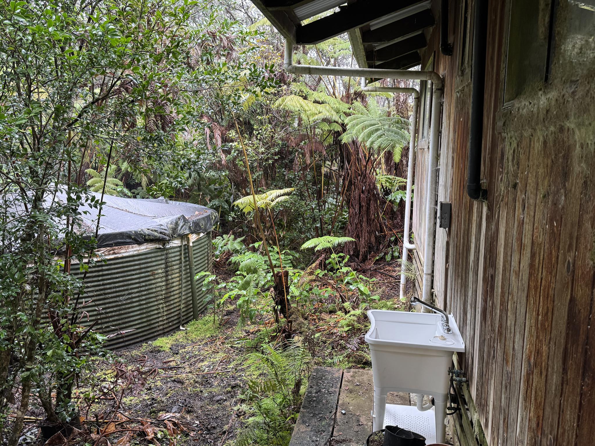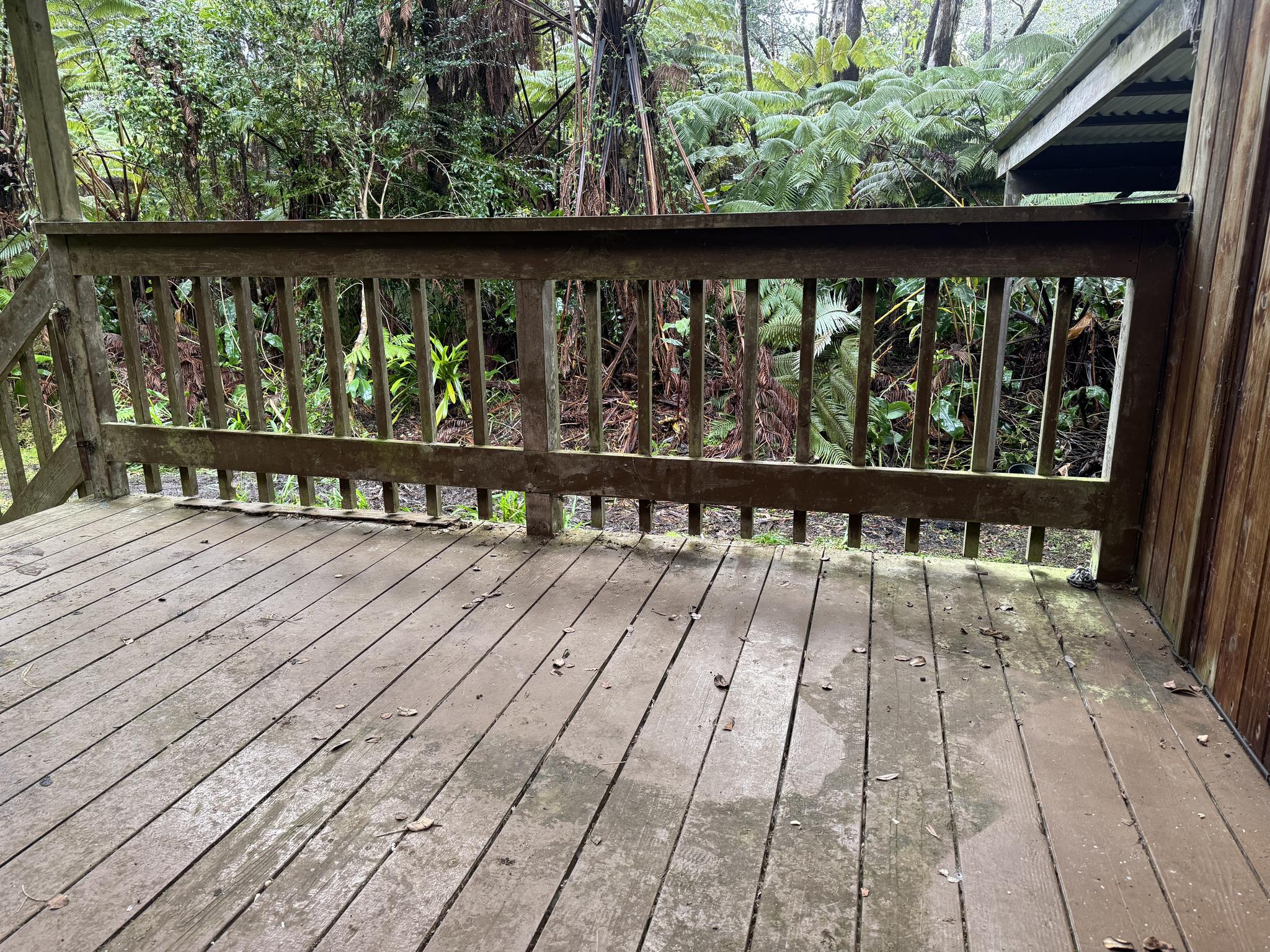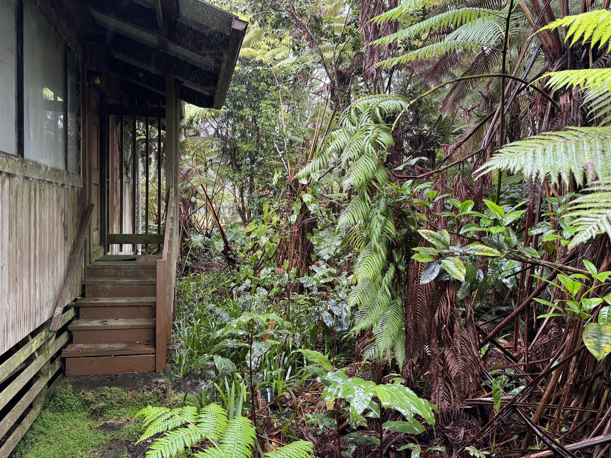 Situated on a 20,000 square foot lot in a quiet forested setting, includes fruiting loquat, grapevine, camellia, climbing miniature rose, hapu'u ferns, ohia trees, and anthuriums.