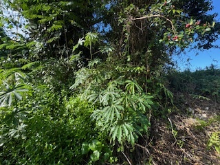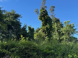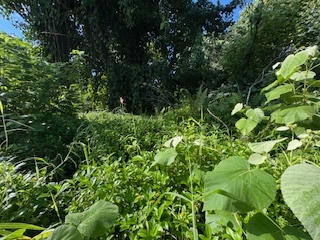 This 15,077 square foot lot has a small trail leading to a cleared grassy area towards the center of the lot.